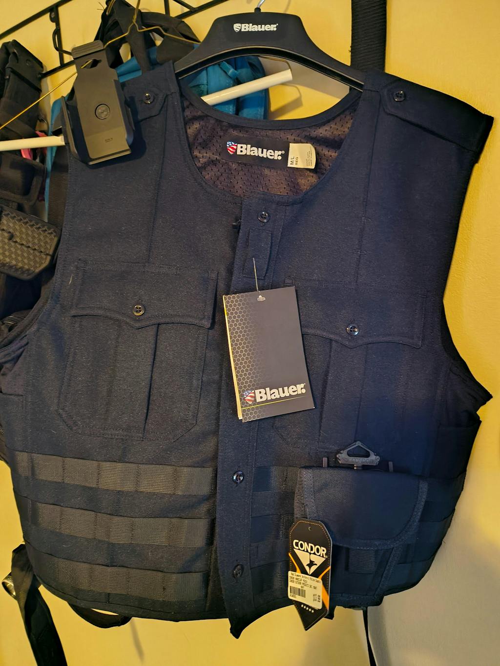 - Holds two sets of handcuffs